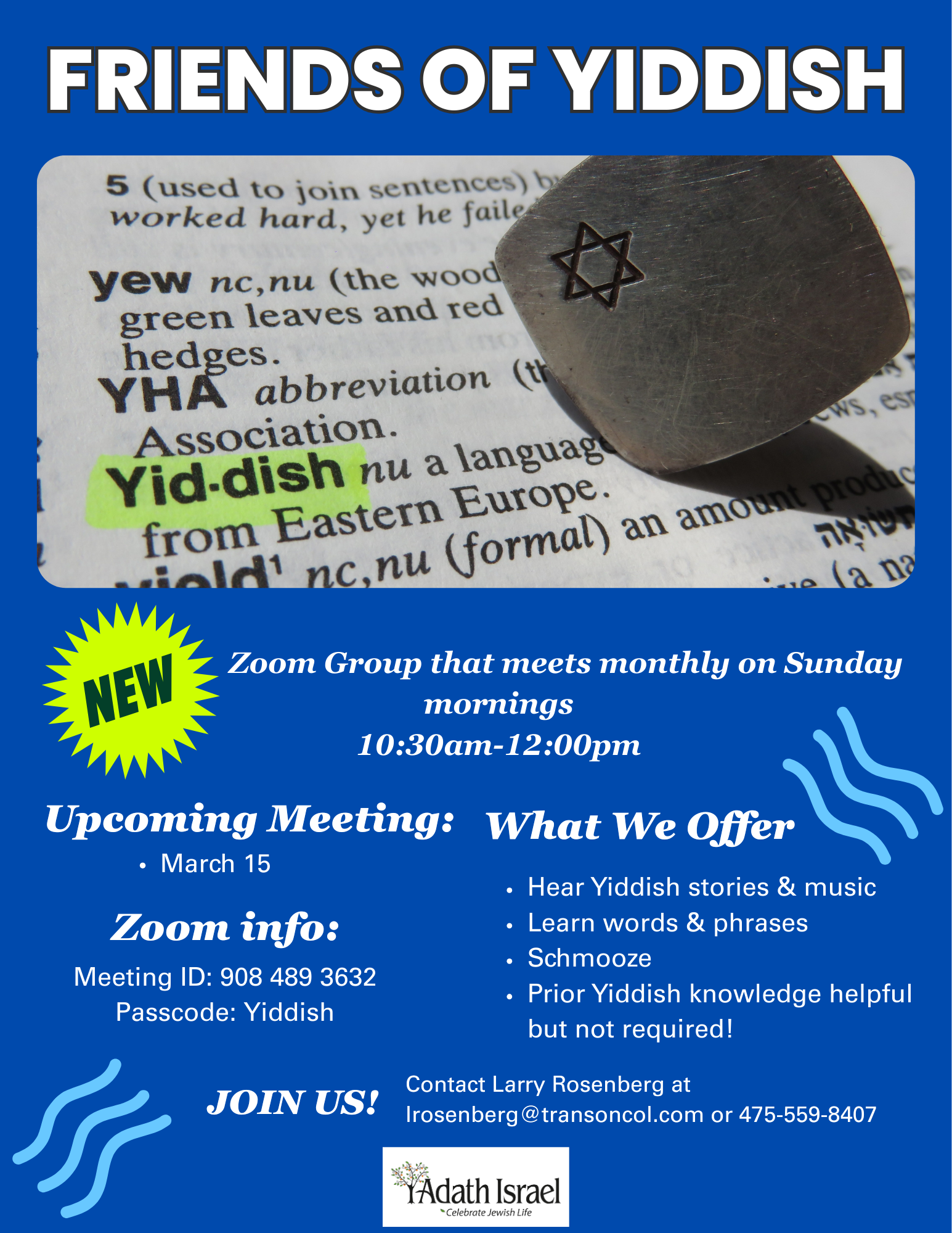 Adath Israel is a vibrant and welcoming egalitarian, Conservative congregation where Jews by birth or choice, interfaith families, traditional and non-traditional families celebrate our Jewish faith and heritage. We strive to meet the diverse spiritual, religious, educational and social needs of our members and to further the causes of the Jewish people in our community, the surrounding communities and the state of Israel.