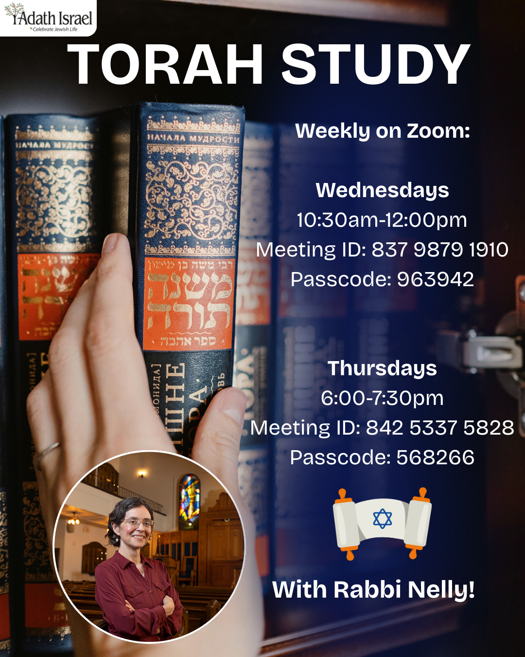 Join us any time on Zoom, or reach out to rabbi@adathisraelct.org with questions.